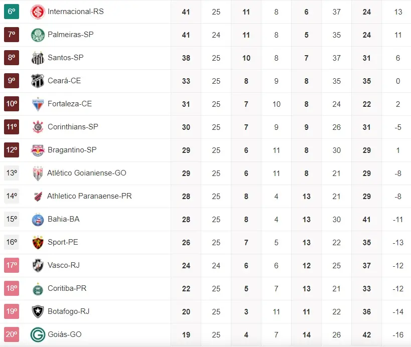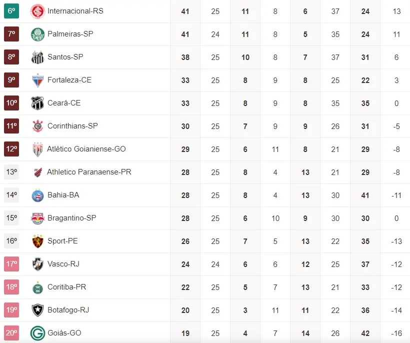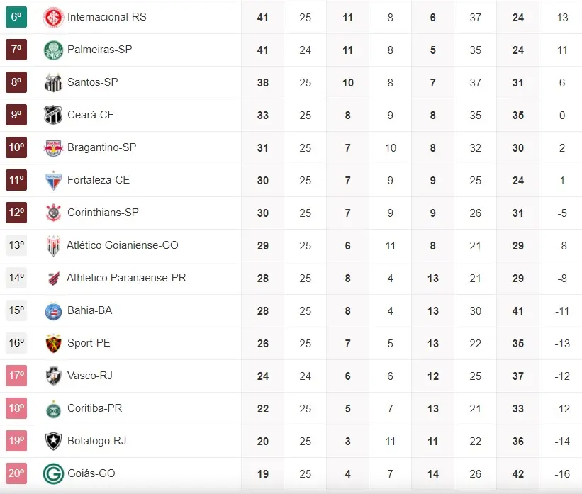 Com isso, o importante é Vovô e Leão continuarem focados em manter ou abrir distância para o Z4, pensando em outros objetivos após chegar aos 45 pontos. Almejar uma vaga na Copa Sul-Americana ou até Libertadores, só após alcançar a pontuação de segurança. Não é pessimismo, é ser realista e respeitar o campeonato, sem ilusões e devaneios.