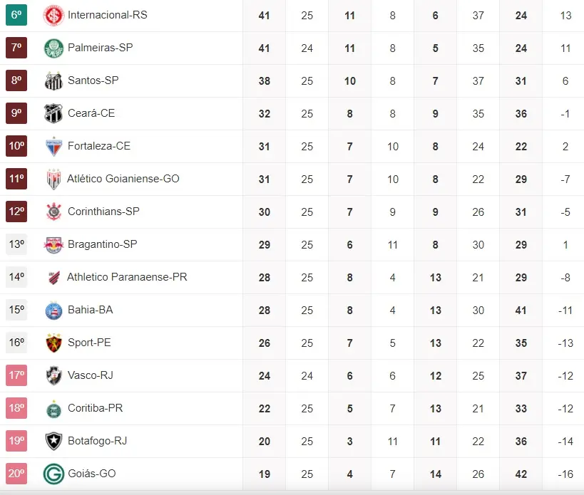 Hoje Vovô e Leão estão separados por apenas 2 pontos e dentro da zona de classificação da Copa Sul-Americana. A vantagem para o Z4 é boa, já com uma "gordurinha", o Ceará com 8 pontos distante, enquanto o Fortaleza, 6, já já que o Vasco, time que abre o Z-4 tem 25 pontos.