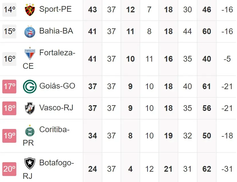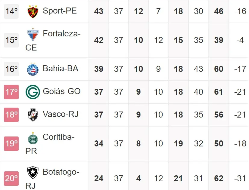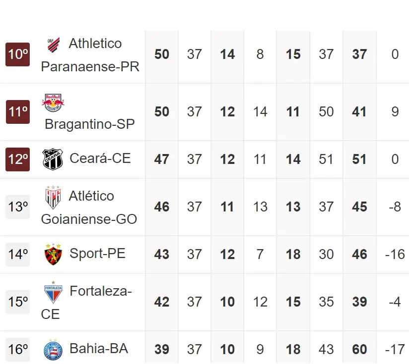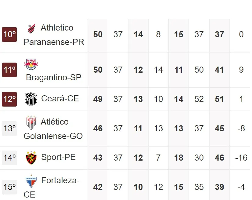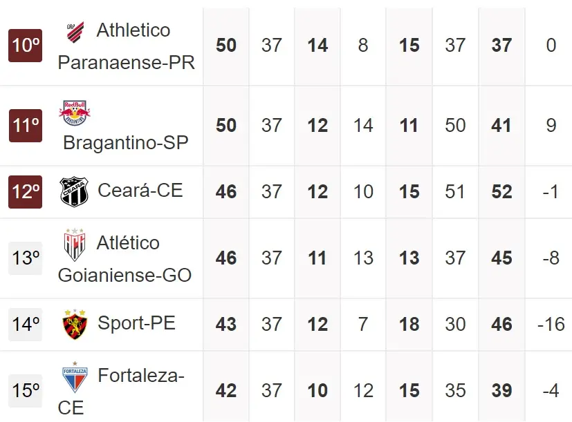 Para o Ceará, o importante é não ser mais ultrapassado pelo 15º colocado, garantindo assim, no mínimo, uma vaga na Sul-Americana pelo 14º lugar.