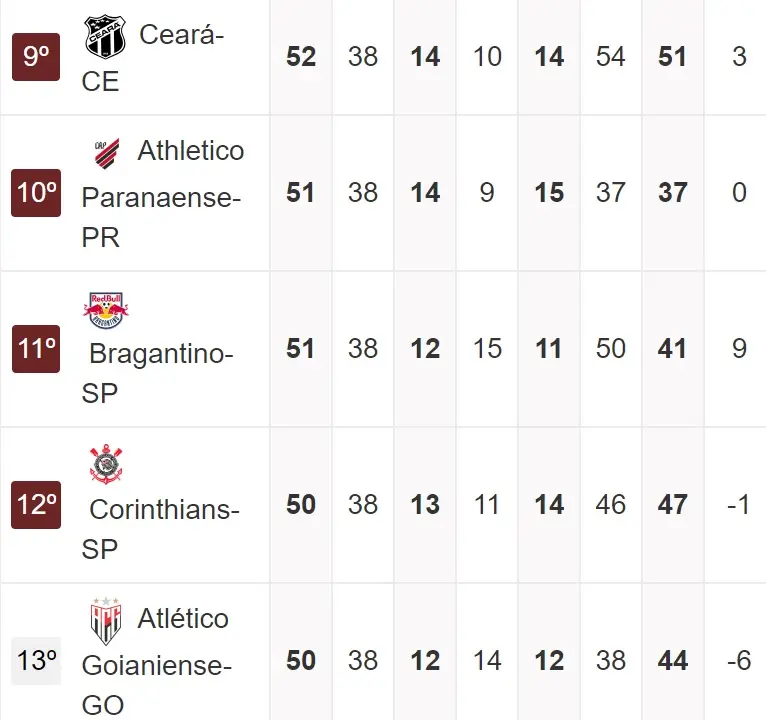 Se o Ceará vencer o Botafogo, terminará a Série A entre os 10 primeiros, caso dois dos três rivais tropecem