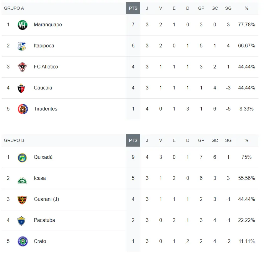 No Grupo A, o Itapipoca goleou o Caucaia por 4 a 0 no Perilo Teixeira, e assumiu a vice-liderança, com 6 pontos. Os gols do Garoto Travesso foram marcados por Stênio, Marcus Breno, Elanardo e Renan Dantas.O líder é o Maranguape, com 7, que folgou na rodada.