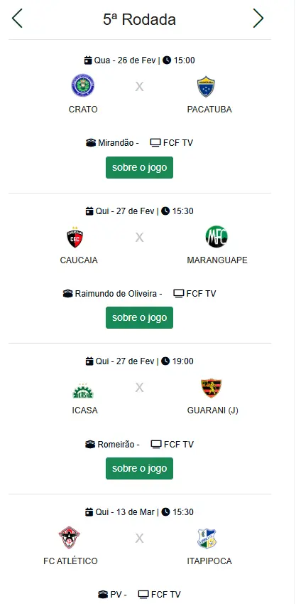A 5ª rodada terá 3 jogos no meio de semana, destaque para o clássico entre Icasa x Guarani de Juazeiro, dois tradicionalíssimos que precisam reagir no certame.