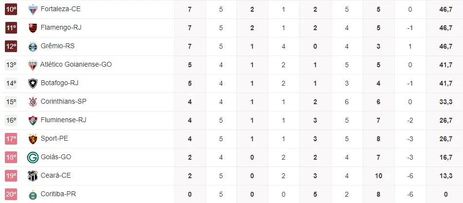 Aqui tem que dar Furacão. O time paranaense vencendo deixaria o Fluminense com 4 pontos. Para o Ceará, uma vitória do Athletico por mais de um gol de diferença pode ajudá-lo ao sair do Z4. Para o Leão, é deixar um time que tem sua mesma pontuação, 4, um pouco para trás.