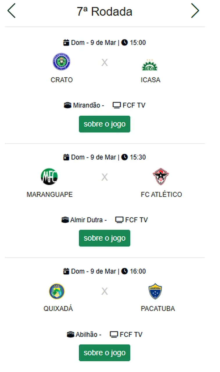 *A partida da 7ª rodada entre Tiradentes x Itapipoca foi adiado para o dia 17. Na segunda-feira Tiradentes e Caucaia entram em campo pela 6ª rodada, às 15h30 no PV.