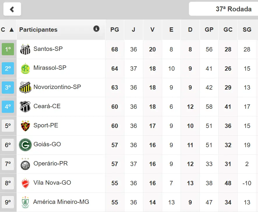 Na última rodada, o time paulista recebe a Chapecoense, no domingo. O Ceará joga fora de casa contra o Guarani/SP, já rebaixado em Campinas, no mesmo dia. O Vovô pode chegar 'colado' no Mirassol na tabela para a última rodada caso vença o América na segunda (18) no Castelão.