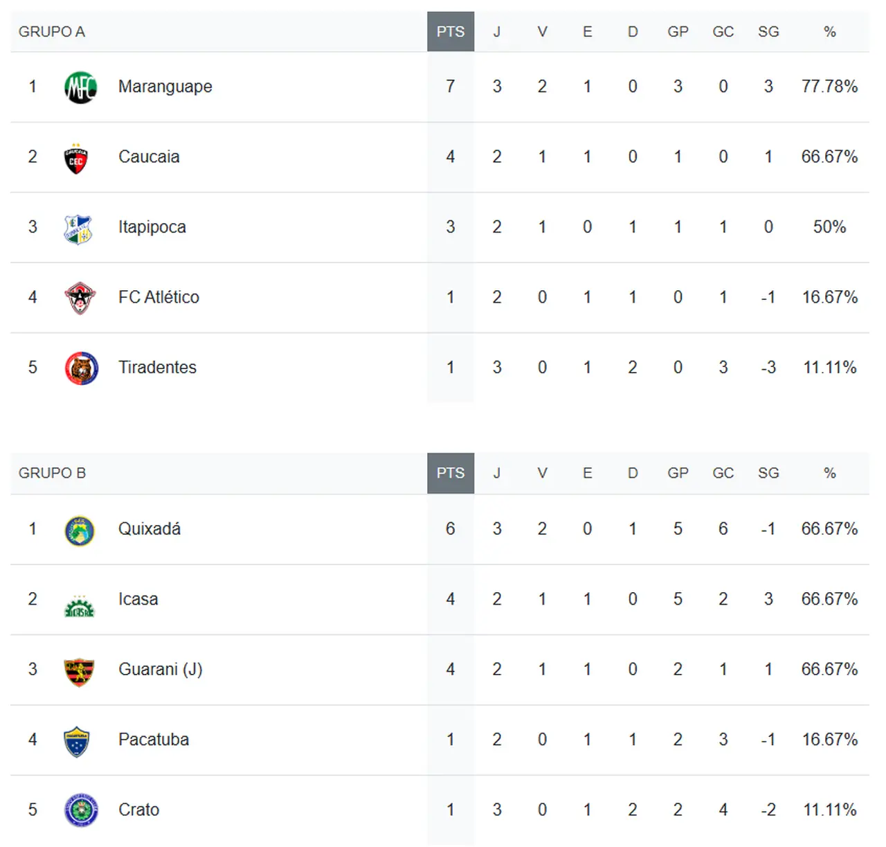O Maranguape lidera o Grupo A com ótima campanha até então. Em 3 jogos, são 2 vitórias e um empate, com 7 pontos na tabela. A equipe ainda não sofreu gols e tem 77% de aproveitamento. O Gavião venceu as duas partidas que fez como mandante, no Almir Dutra, em Maracanaú e folga na rodada. A 4ª rodada pode permitir a aproximação de Caucaia e Itapipoca, que se enfrentam.