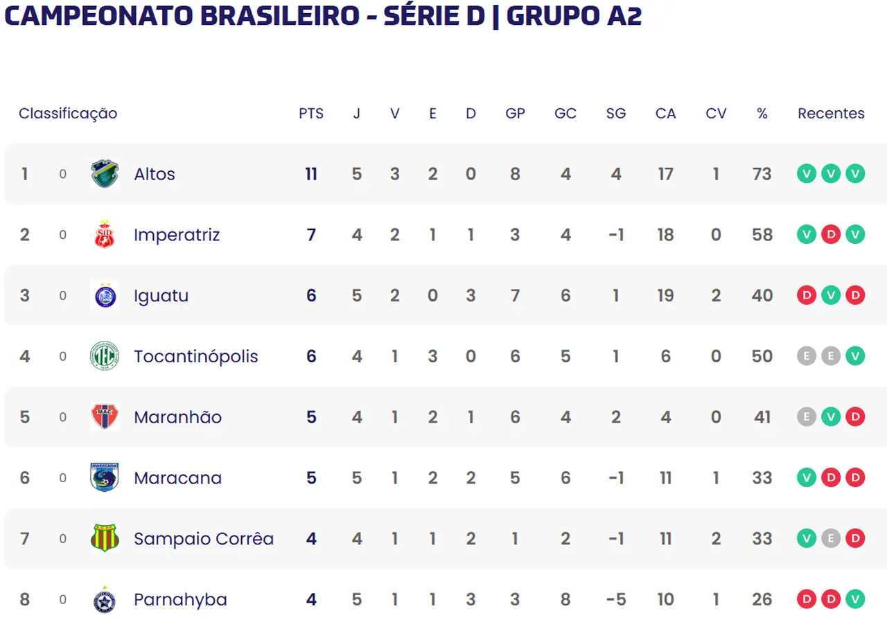 E como a 5ª rodada do Grupo A2 ainda não terminou, com 2 jogos no dia 21, Tocantinópolis x Imperatriz e Sampaio Corrêa x Maranhão, os dois cearenses podem perder posições na tabela.