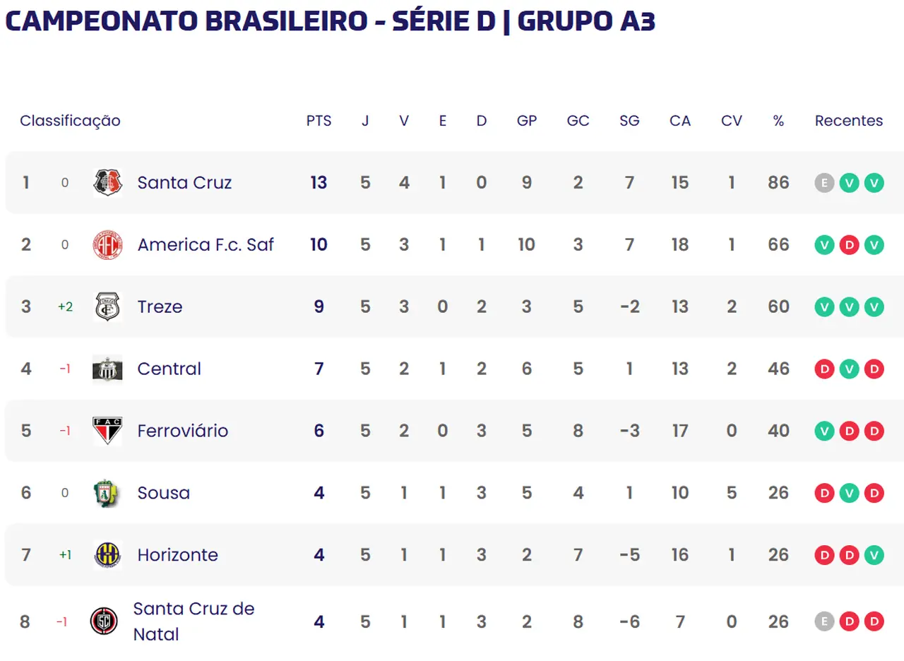 A equipe coral caiu para 5º com 6 pontos, pontuação conquistada em casa. A equipe de Tiago Zorro terá 3 jogos dificílimos em sequência (América/RN em casa, Santa Cruz fora, e depois o mesmo adversário em casa). São dois favoritos ao acesso e que despontam no Grupo A3.