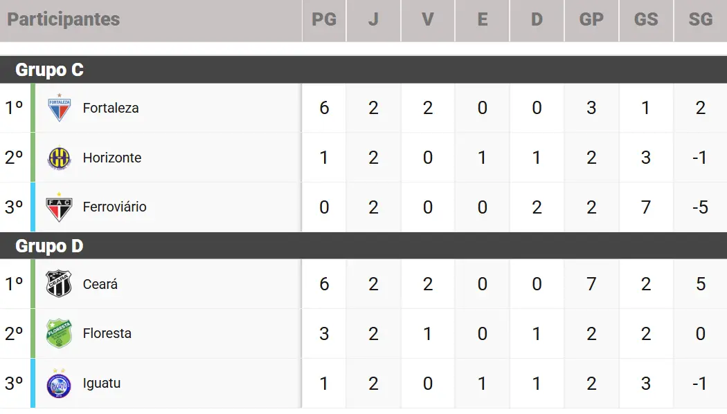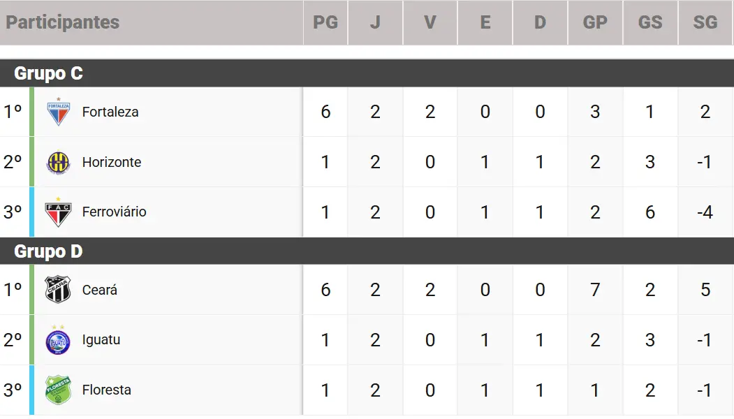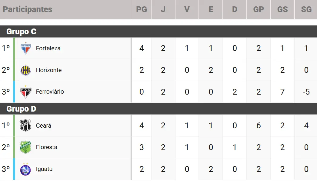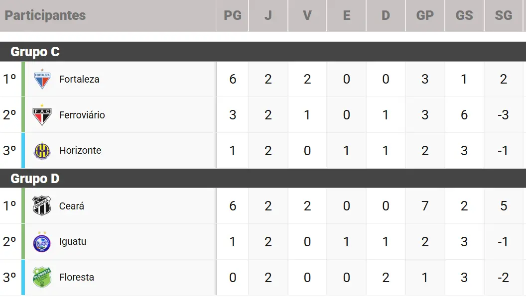 Os dois primeiros de cada grupo se classificam para as semifinais do Campeonato Cearense