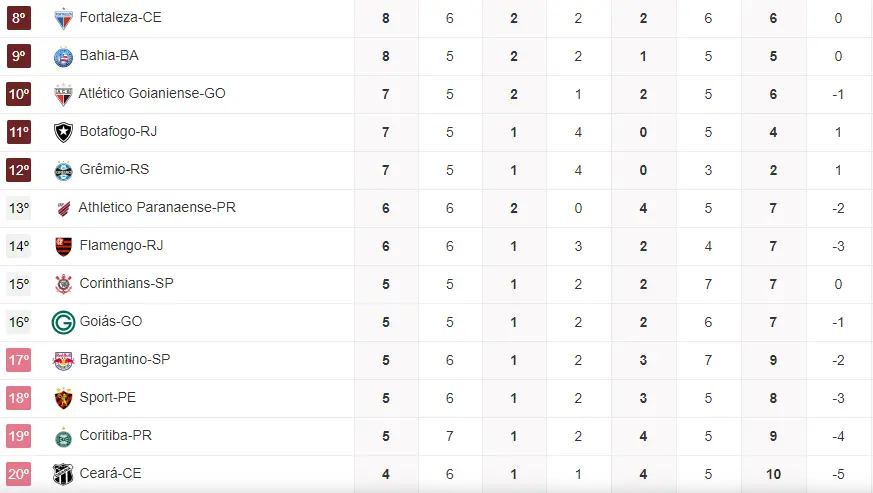 E na rodada, os adversários dos times cearenses são dois adversários diretos: no sábado no Castelão, o Fortaleza recebe o Bragantino e se vencer pode alcançar uma excelente 8ª colocação. No domingo, o Vovô visita o Atlético/GO e se vencer pode chegar ao 9º lugar, também uma ótima colocação ao fim da rodada.