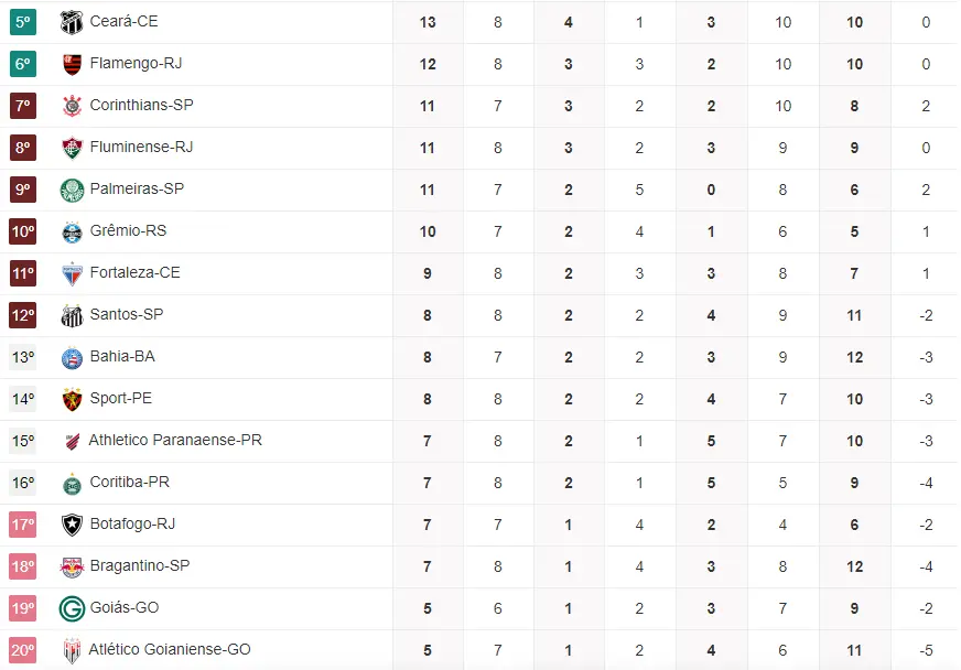 Assim, a 8ª rodada reserva adversários difíceis para ambos, com o Alvinegro recebendo o Santos às 21 horas no Castelão, e o Tricolor de Aço visitando o Flamengo, às 17 horas no Maracanã. São duas pedreiras, principalmente para o Fortaleza, que enfrentará o adversário mais difícil possível e com seu mando. O Fla já dá sinais de crescimento, e a vitória de 5 a 3 contra o Bahia o colocou no G6.