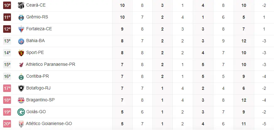 A 7ª rodada da Série A do Campeonato Brasileiro deixou Vovô e Leão frente à frente no Clássico-Rei e deu Ceará com justiça. A vitória alvinegra fez a equipe dar um salto na tabela e terminar a rodada em 7º com 10 pontos, uma posição abaixo da zona de classificação da Libertadores. Ao Leão, encerrar a rodada em 10º com 8 pontos e manteve na Zona da Copa Sul-Americana é um alento, apesar da diferença para o Z4 cair para um ponto.