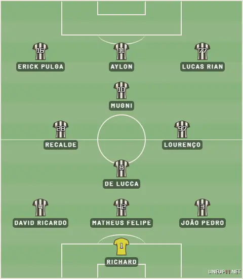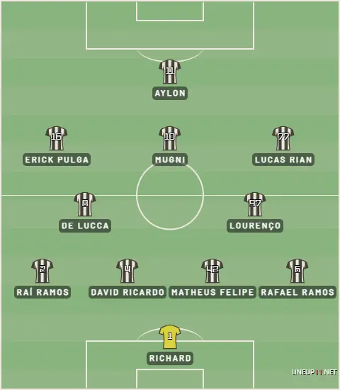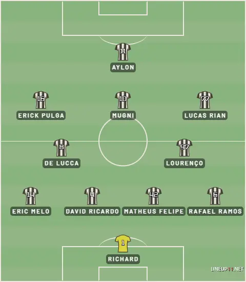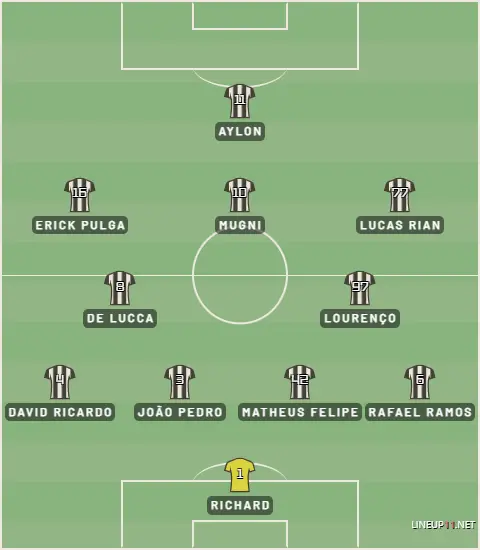 A primeira opção de formação para o Vovô são com reposições mais 'seguras', com base nos jogadores que entraram contra o Operário no jogo anterior. Eric Melo, que faria sua estreia no Vovô, no lugar de Matheus Bahia. Lourenço, com mais ritmo depois de entrar no decorrer do jogo na última partida, no lugar de Richardson. E Lucas Rian, que vem entrando no decorrer dos jogos, no lugar de Saulo.