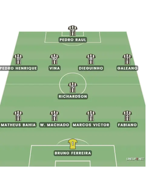 Pela caraterística, Vina jogaria no lugar de Lourenço, mais próximo de Pedro Henrique. Pedro Raul foi o centroavante.