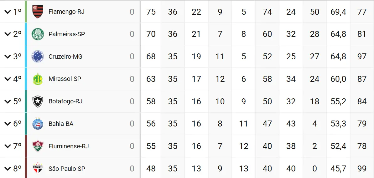 Para efeito de comparação, antes de Palermo assumir, o aproveitamento do Fortaleza era de apenas 24,2% na Série A. O time estava em 19º com 15 pontos e 10 de sair do Z4.