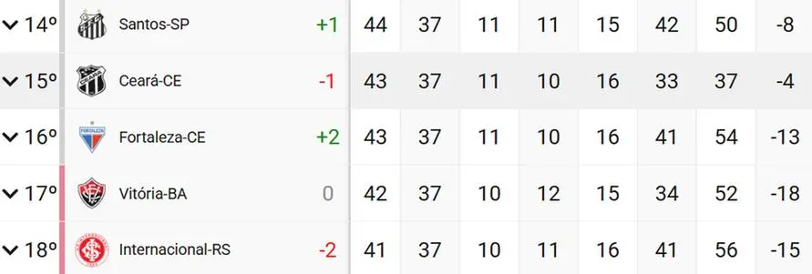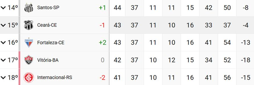 *Se o Vovô empatar, o Internacional não pode mais alcançar o Ceará na última rodada nem vencendo o Bragantino.