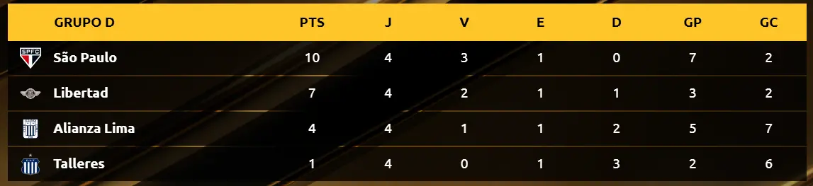 O Tricolor Paulista lidera o Grupo com 10 pontos, e se classificará já na 5ª rodada se empatar em casa com o Libertad. Pode até se classificar perdendo, caso o Alianza não vença o Talleres.