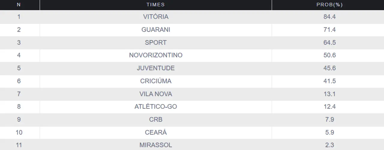 A Série B está na 29ª rodada e restam apenas 10 para definir os 4 clubes que estarão na elite no ano que vem. No momento, 10 clubes ainda tem possibilidade de acesso - na Série B mais equilibrada de todos os tempos - com o Ceará sendo um dos postulantes, ainda que suas possibilidades sejam remotas (apenas 5,9% de acordo com a UFMG, pela distância de 8 pontos para o G4).
