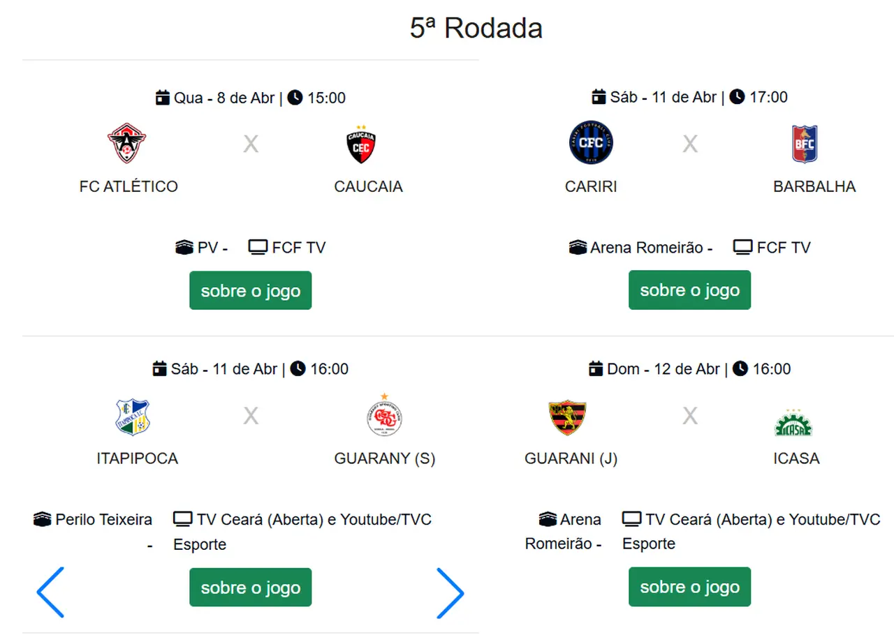 Jogos da 5ª rodada