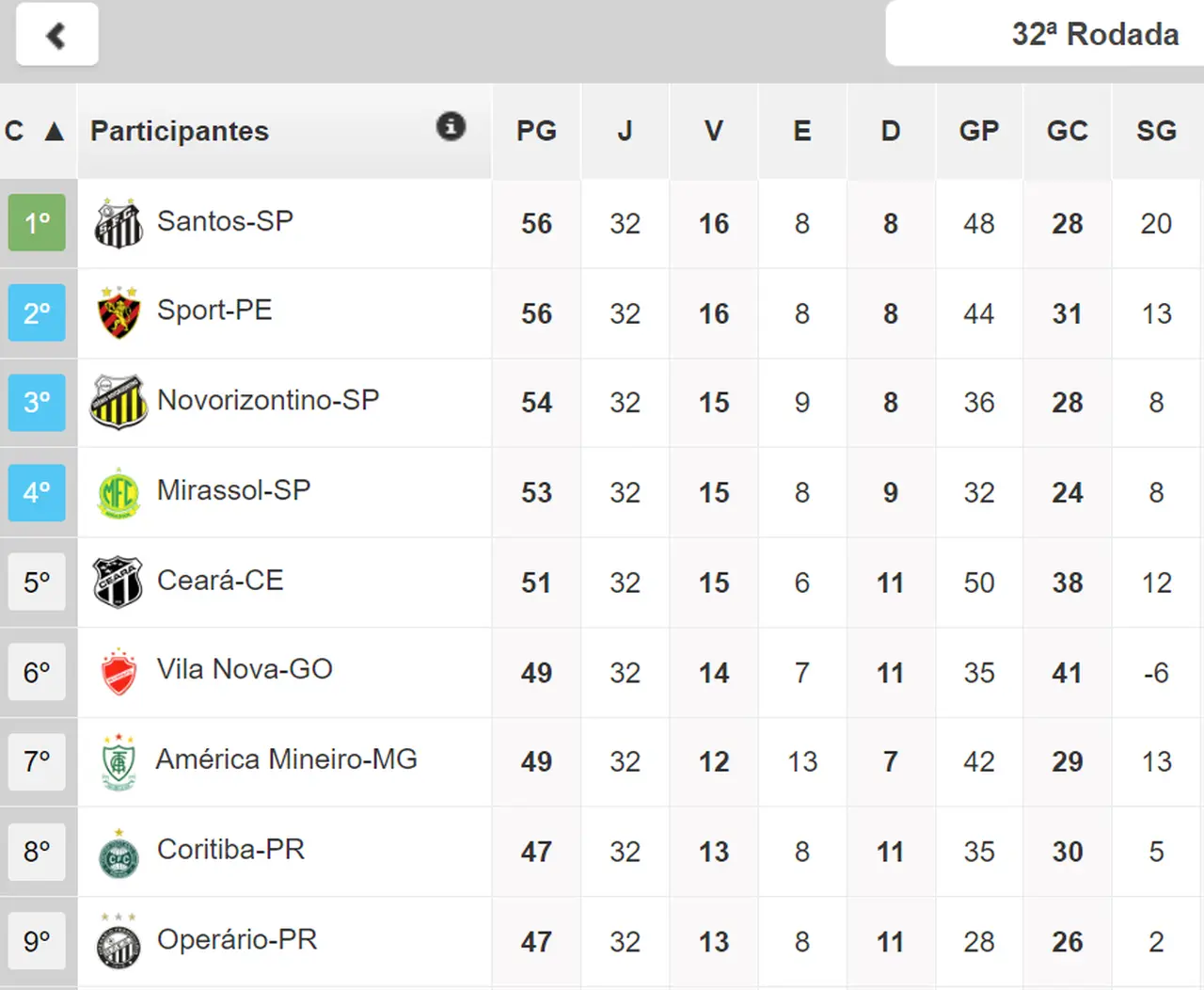 A campanha é melhor que a do líder Santos e de outros 6 adversários diretos na luta pelo acesso: Novorizontino, Mirassol, Vila Nova, América/MG, Coritiba e Operário. De todos os postulantes ao acesso, o Vovô só não somou mais pontos que o Sport, que fez 21.