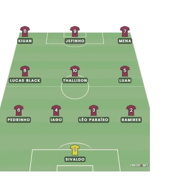 A construção geralmente começa com Lucas Black, volante de passadas largas que protege bem a bola e acha passes que quebram linhas.