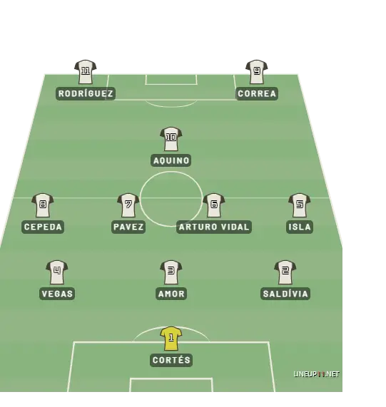 A formação utilizada foi: Cortés, Vegas, Amor, Saldívia, Cepeda, Pavez, Arturo Vidal, Isla, Aquino, Rodríguez e Correa.