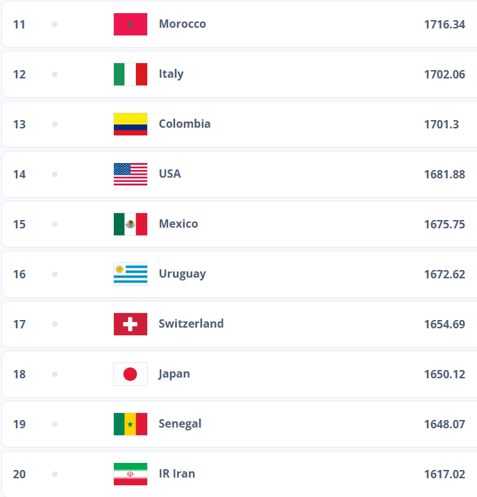 As 5 seleções encerraram o ranking nas colocações nas quais foram 'cabeças de chave' do sorteio da Copa do Mundo 2026 e alocadas no chaveamento até a decisão.