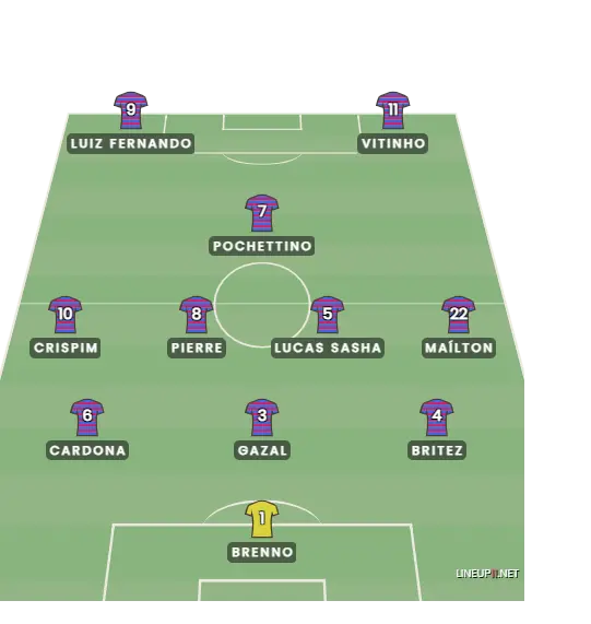 A última opção é jogar sem centroavante. O ataque seria formado por Luiz Fernando e Vitinho, com Pochettino no meio campo como armador.