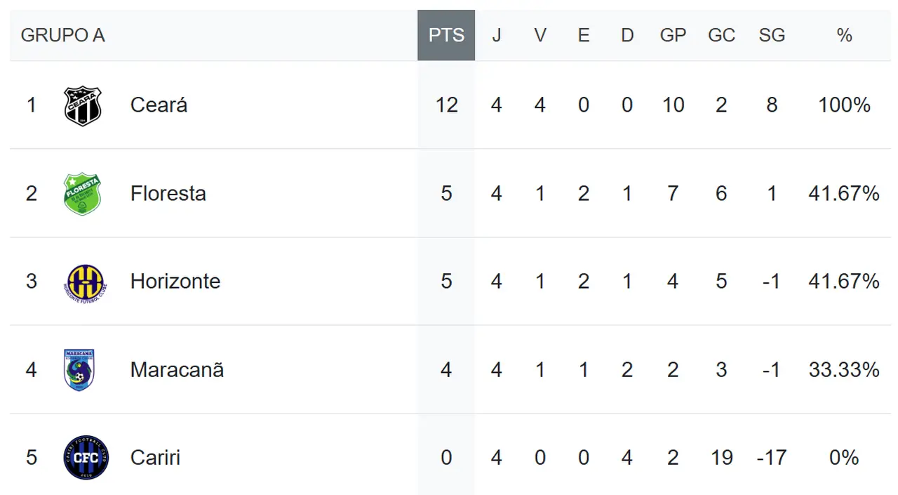 O Floresta está 2º do Grupo A e se vencer estará classificado. Se empatar, torcer para que o Maracanã também empate seu jogo.