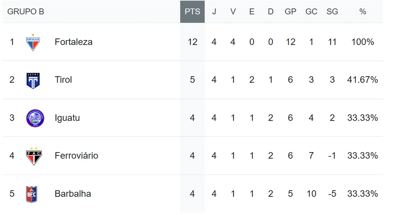 O Iguatu é o 3º do Grupo B com 4 pontos e se vencer precisa torcer só perde a vaga se Tirol e Ferroviário também vencerem, sendo que o Ferrão precisa descontar uma diferença grande de saldo: -1 a 2. Se empatar, o Ferroviário também precisa empatar.