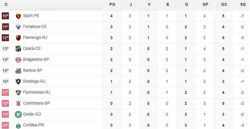 Depois de surpreender o Brasil goleando o Flamengo, o Atlético/GO enfrentará um time do seu nível, o Sport, em duelo direto pela permanência. Como os dois times tem 3 pontos, o melhor resultado é um empate, para não desgarrarem.