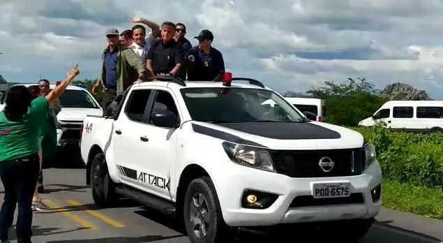 Entre os apoiadores do presidente que se deslocaram para a cidade, o deputado foi o único cearense a subir no carro e acenar aos populares que aguardavam a passagem presidencial.
