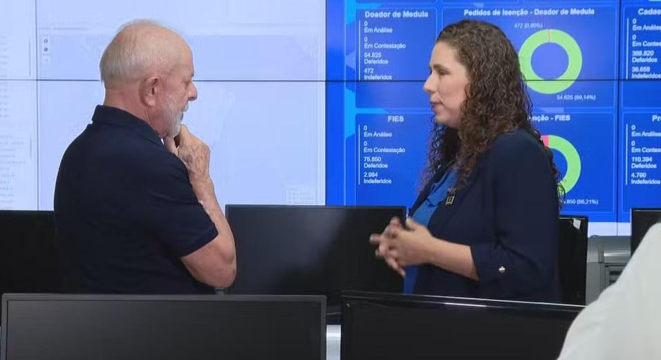 O presidente Lula (PT) visitou, neste domingo (18),a sala de situação instalada na sede do Dataprev, em Brasília, para monitorar a aplicação do Concurso Nacional Unificado (CNU).