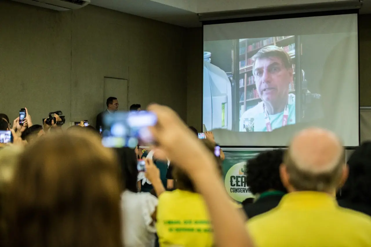 Por meio de transmissão ao vivo por celular, o presidente participou de evento de adesão ao novo partido Aliança pelo Brasil