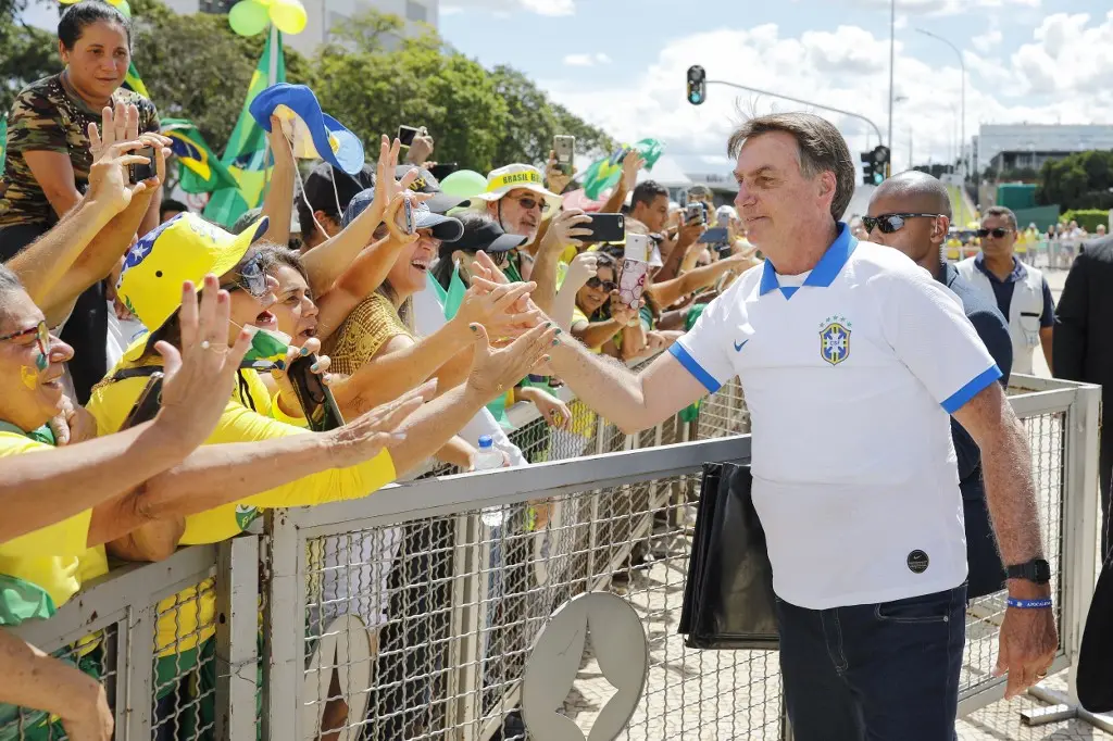 Sem máscara, o presidente desceu a rampa da Esplanada dos Ministérios e, em seguida, passou a esticar o braço para tocar nos manifestantes, separados por uma grade. Havia algumas centenas de simpatizantes diante do Planalto. O presidente também manuseou o celular de alguns manifestantes para fazer selfies. "Isso não tem preço", disse, durante transmissão ao vivo em suas redes sociais.