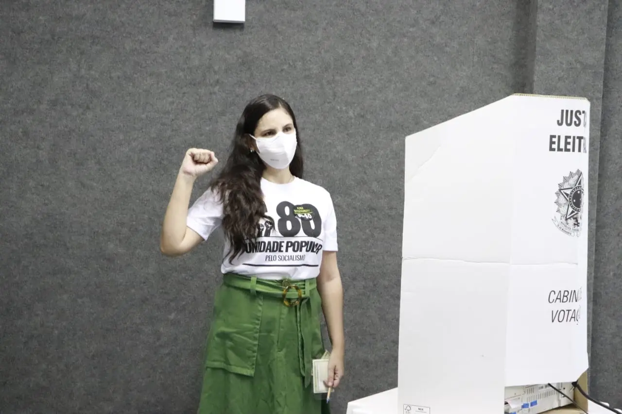 Paula Colares (UP) votou pela manhã, às 8h30, no Colégio Lourenço Filho (Centro). Ela estava acompanhada pelo candidato a vice-prefeito de sua chapa, Serley Leal, e de candidatos a vereador pelo partido de esquerda.