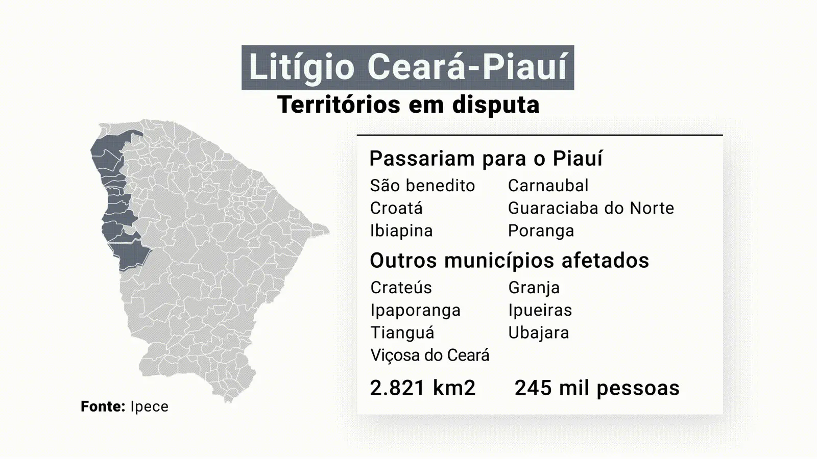 Ao menos 244.712 pessoas poderão deixar de ser cearenses por causa de uma disputa judicial entre os estados de Ceará e Piauí. Trata-se de uma ação que tramita no Supremo Tribunal Federal (STF), desde 2011, e prevê uma reconfiguração territorial, a partir da qual seis municípios na região da Serra da Ibiapaba passariam para o lado piauiense. Outras sete cidades também teriam extensão modificada. O assunto foi discutido nesta sexta-feira (19) na Assembleia Legislativa do Ceará.