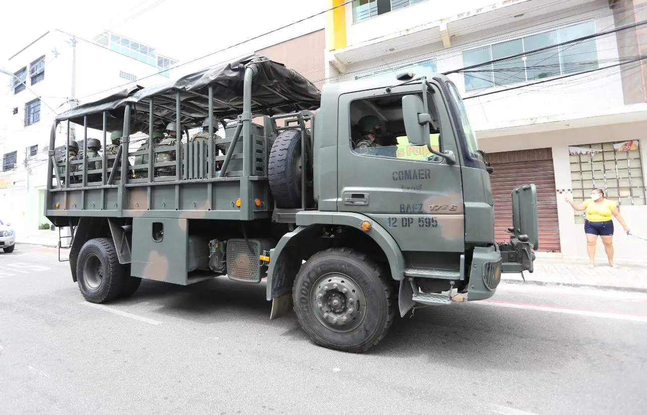 Em Caucaia, na Região Metropolitana de Fortaleza, cidade que recebeu reforço de segurança solicitado pelo Tribunal Regional Eleitoral (TRE-CE), as tropas da Força Nacional circularam pelas ruas do centro. Ao todo, cerca de 80 agentes foram enviados para garantir a ordem durante o pleito.