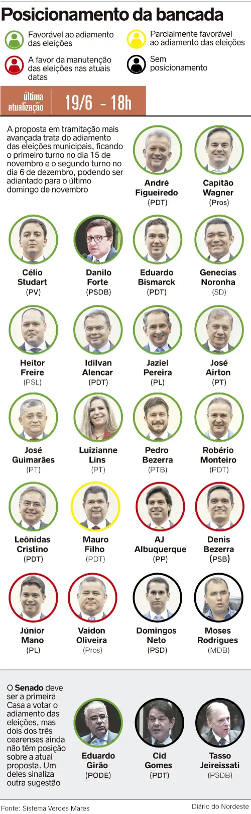 Em sondagem realizada pelo Diário do Nordeste, 64% dos parlamentes federais do Ceará eram favoráveis ao adiamento.