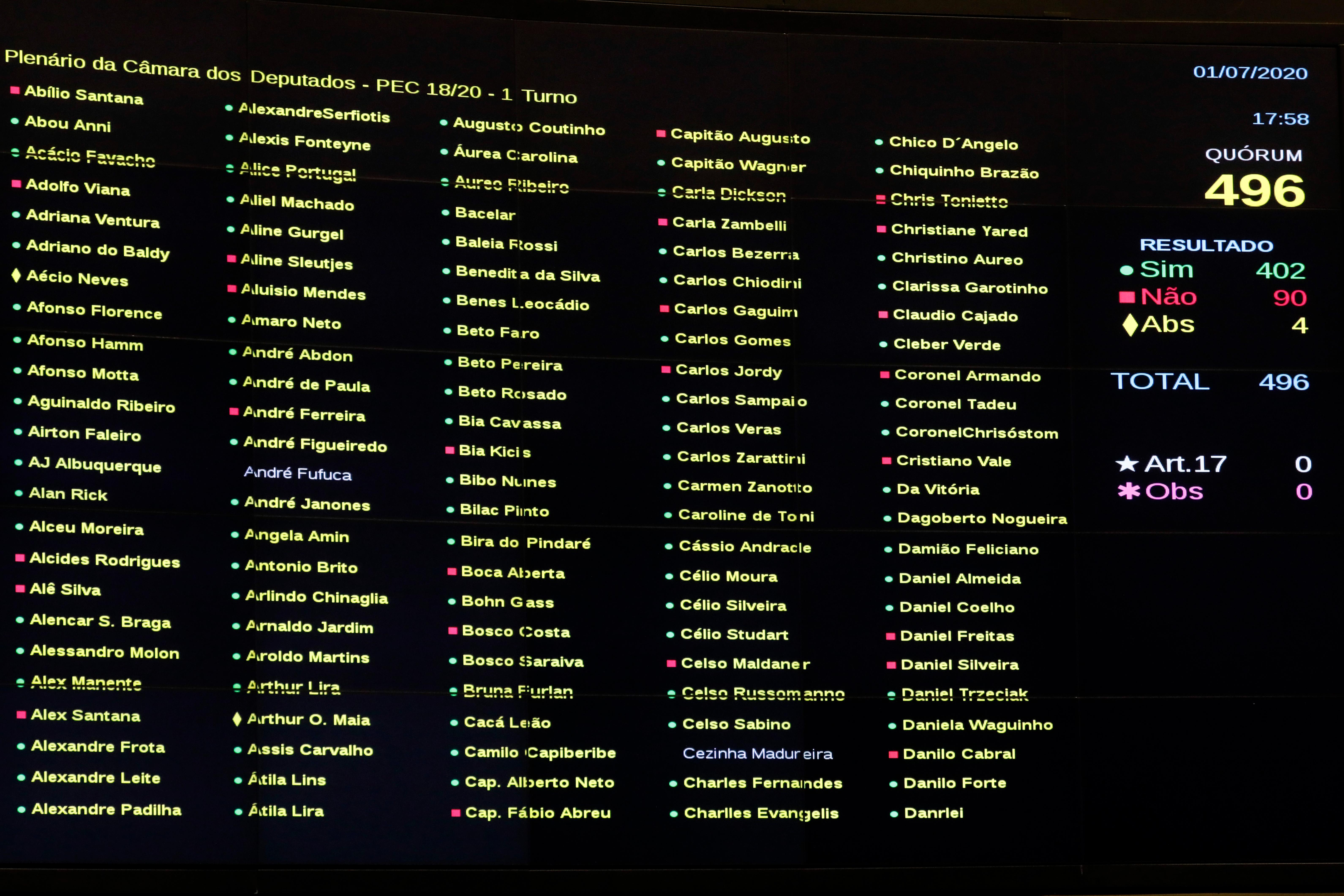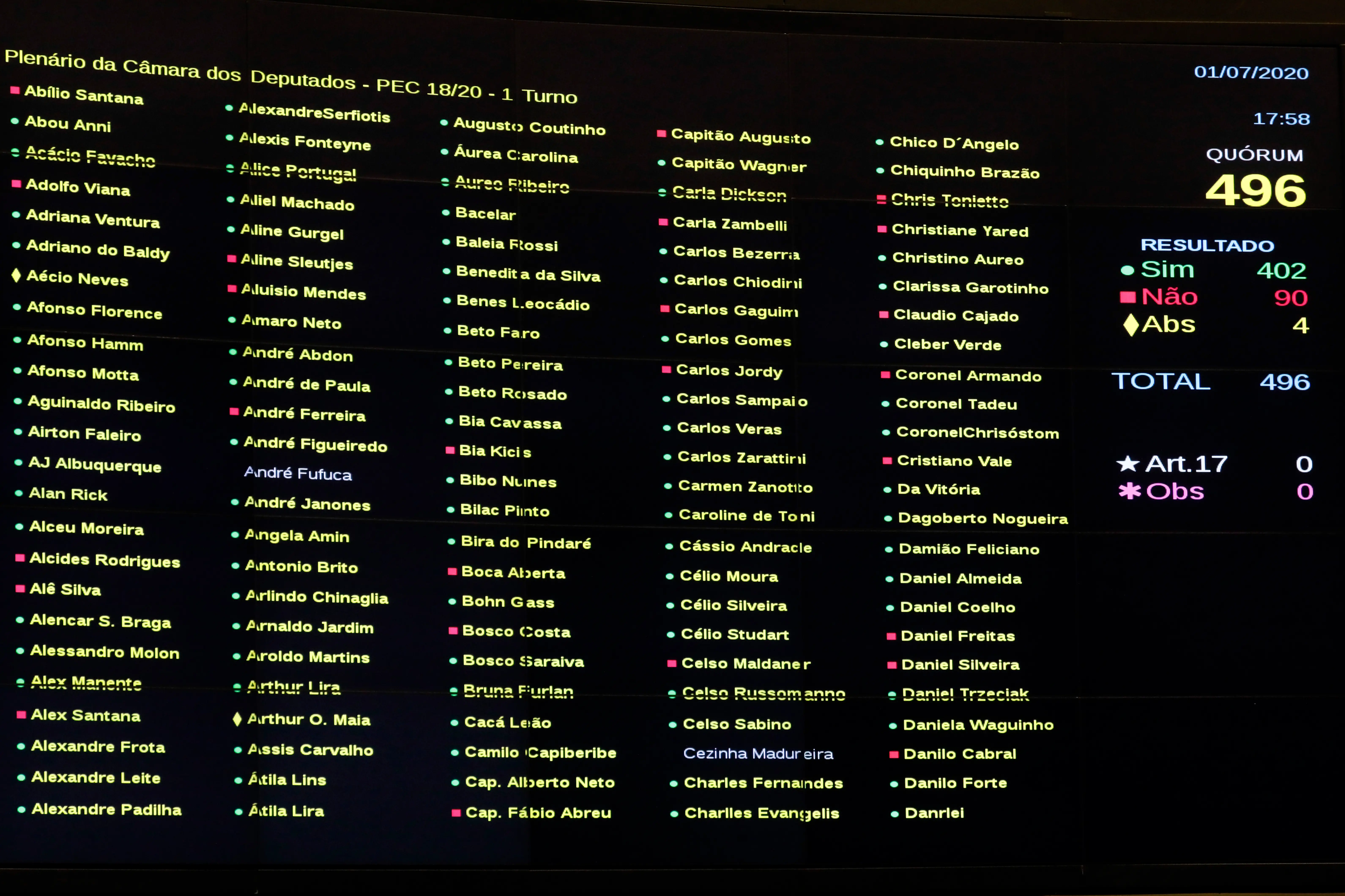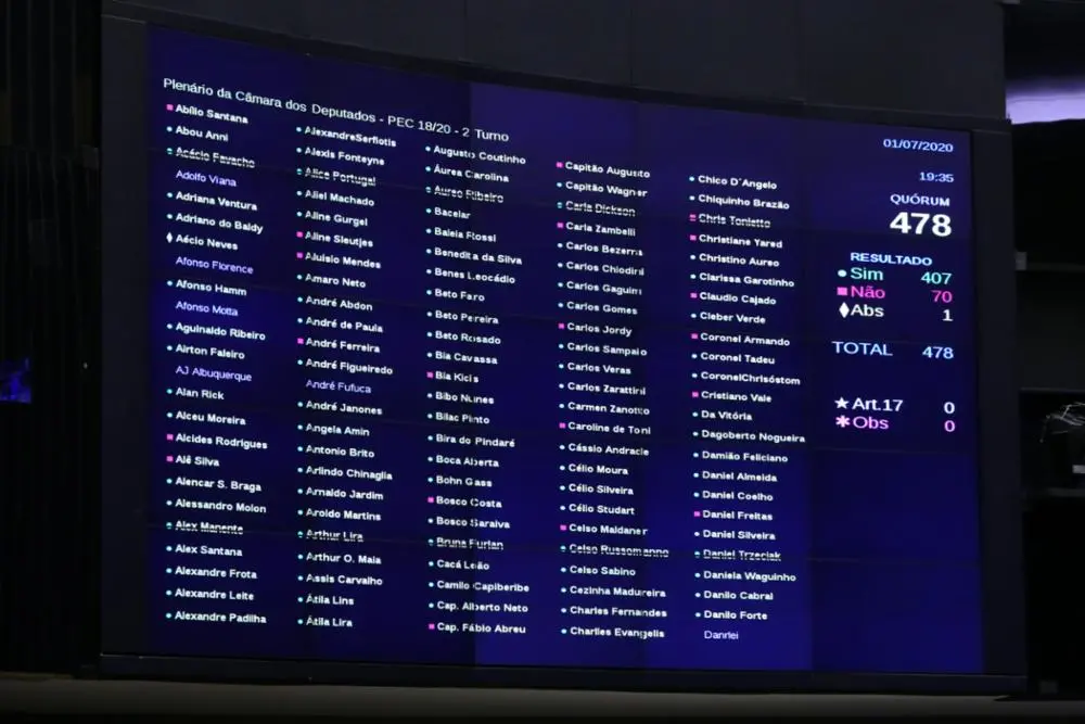 Para que a proposta fosse aprovada era necessário o apoio de 308 dos 513 deputados. No primeiro turno, o texto teve 402 votos a favor, 90 contra e quatro abstenções. No segundo turno, proposta recebeu 407 votos favoráveis e 70 contrários. O PROS, o Patriota e o Governo Bolsonaro liberaram os votos.