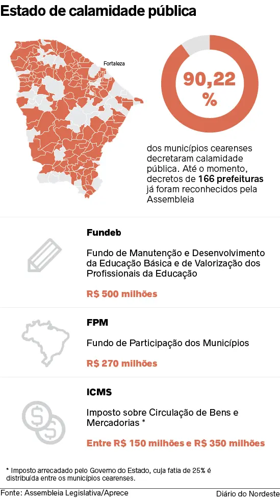 Hoje, a Assembleia Legislativa do Ceará deverá aprovar a solicitação de estado de calamidade pública para o município de Jardim. Com essa aprovação, o Estado terá 167 prefeituras nessa condição, do total de 184 cidades.