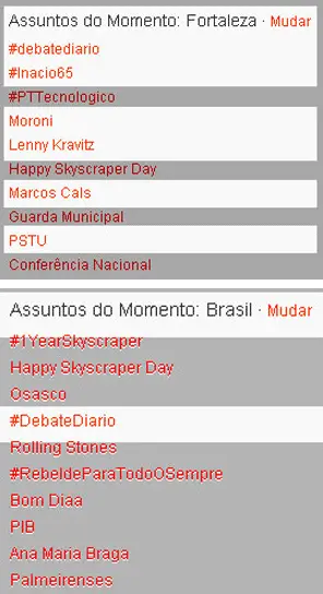 Às 10h12, quatro tópicos sobre o debate figuravam nos TTs Fortaleza no Twitter. Às 10h25, esse número subiu para 5 tópicos e às 10h35, eram 6 tópicos em Fortaleza.