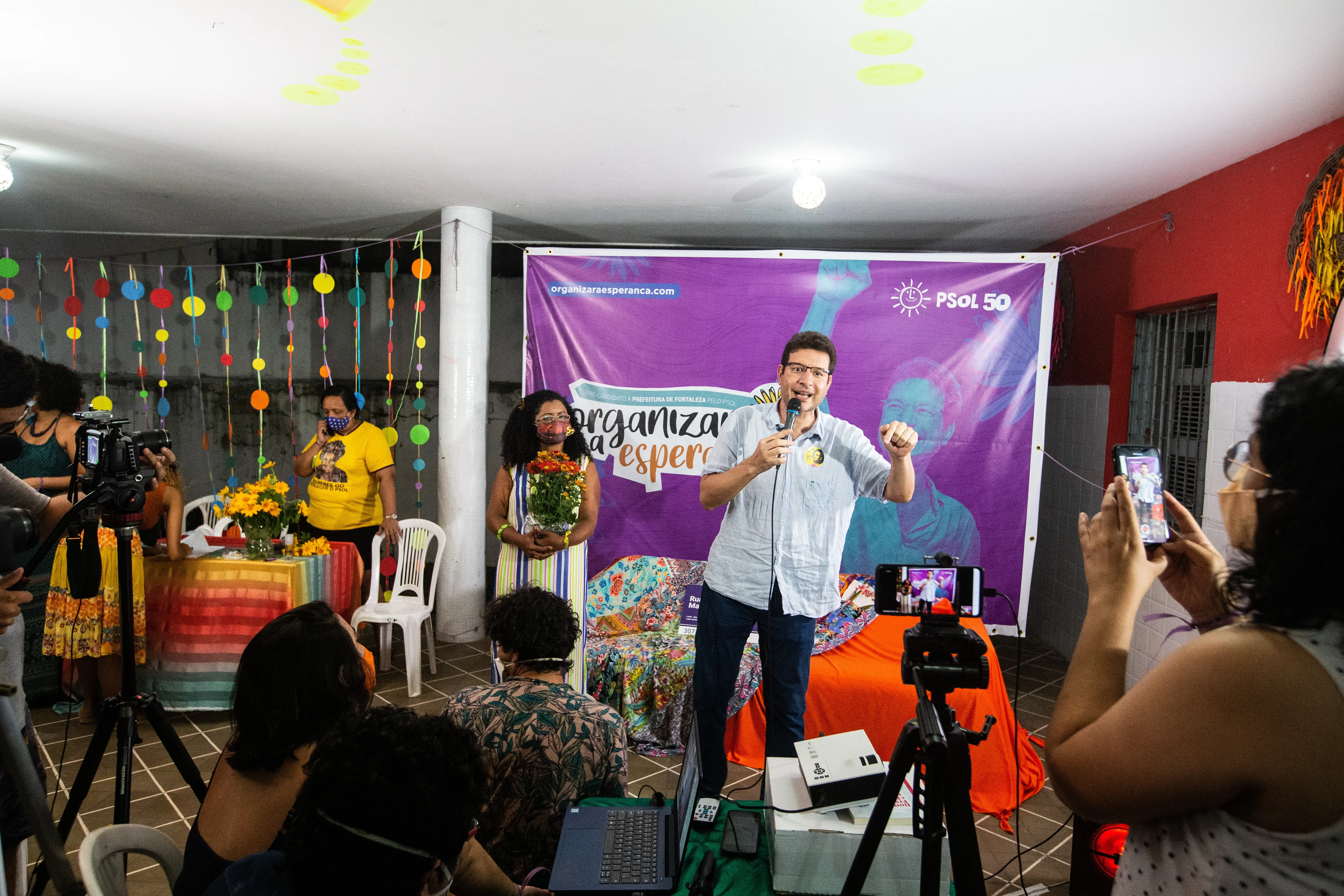 "Nossa candidatura representa um projeto de resistência democrática, que possa contribuir para a superação desse autoritarismo que vem se espalhando pelo Brasil e nós não queremos que isso cresça em Fortaleza. Nesse cenário de pandemia, nós vamos usar da nossa criatividade e determinaçao para superar essa desigualdade material das outras candidaturas", ressaltou Roseno.