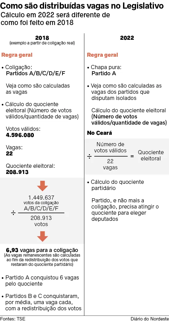 A nova legislação eleitoral, colocada em prática a partir de 2020, acendeu um alerta entre deputados estaduais e federais, de olho na reeleição em 2022. No PDT, maior partido da Assembleia Legislativa e da bancada federal cearense, alguns parlamentares comentam, reservadamente, sobre as chances na disputa.