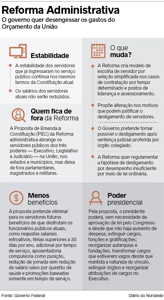 A reforma abrange todos os futuros servidores públicos, como analistas e técnicos dos Três Poderes, segundo o secretário especial adjunto de Desburocratização, Gestão e Governo Digital do Ministério da Economia, Gleisson Rubin.