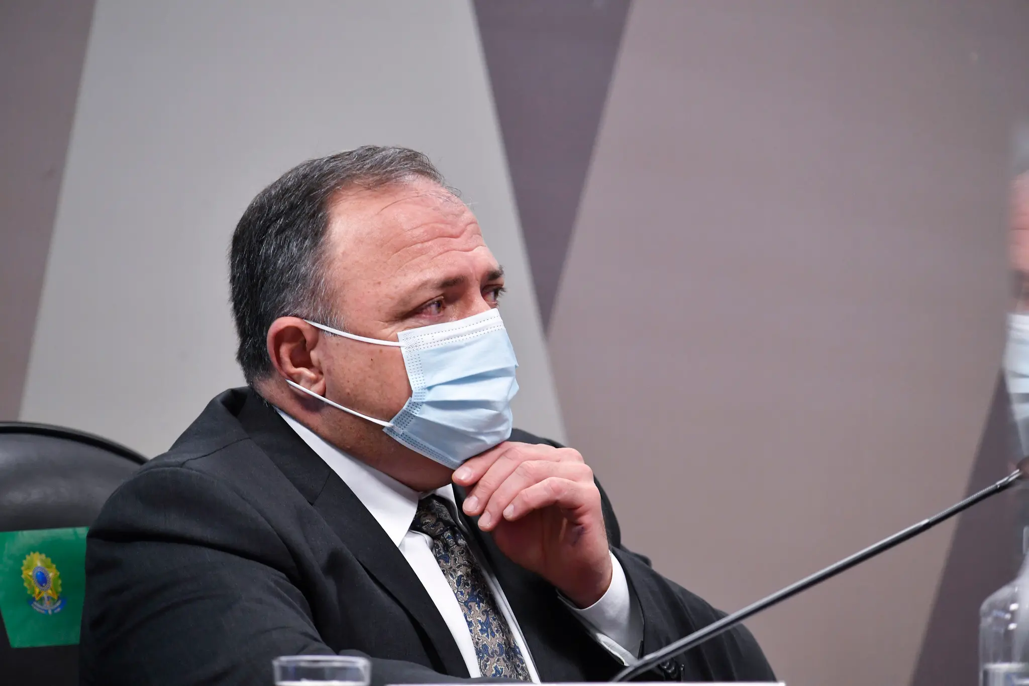Ele também foi flagrado sem o acessório no Senado Federal, durante um dos intervalos do depoimento.