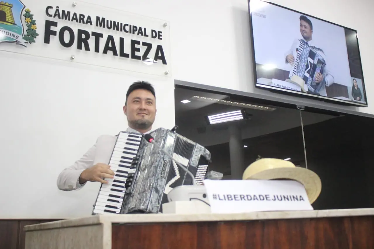 O vereador Michel Lins (PPS) subiu à tribuna do plenário da Câmara Municipal de Fortaleza, na manhã desta quarta-feira (22), tocando uma sanfona em defesa do "quadrilheiro" das festas juninas.