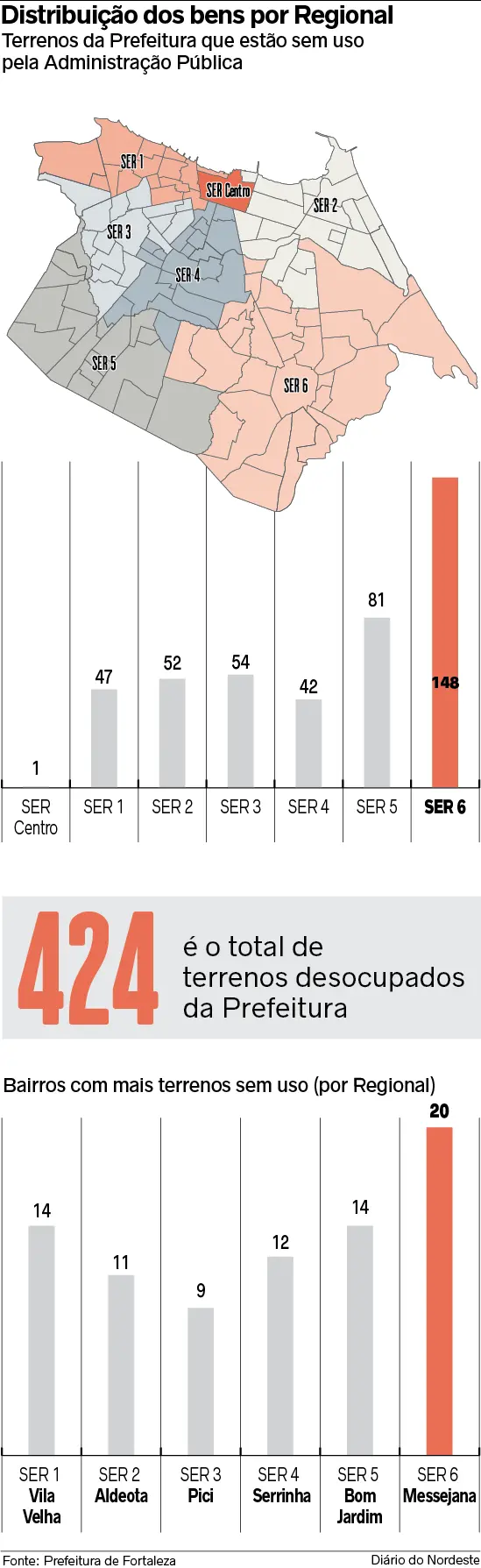 Levantamento do Núcleo de Dados do Sistema Verdes Mares, a partir de dados obtidos por meio da Lei de Acesso à Informação, mapeou 424 propriedades em desuso na Capital pelo Poder Público. Contudo, o texto estabelece que apenas os terrenos com tamanho igual ou inferior a 20 mil metros quadrados poderão ser colocados à venda, a ser realizada por meio de licitação.
