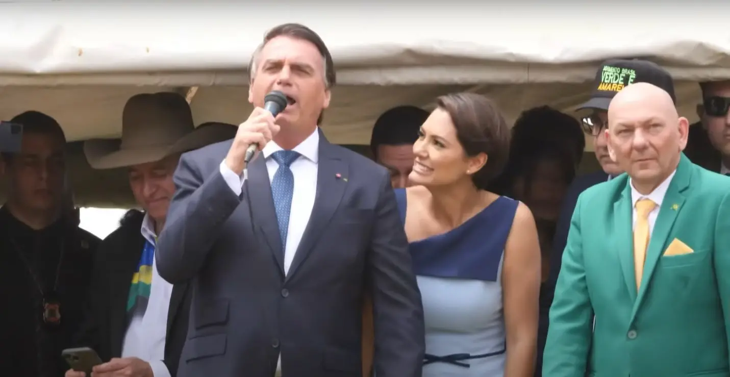 O chefe do Executivo federal estava acompanhado da primeira-dama, Michelle Bolsonaro, do candidato a vice em sua chapa, o general Braga Netto, e de empresários aliados, incluvise alguns que foram alvos de mandados de busca e apreensão por compartilharam no WhatsApp mensagens contra a democracia do Brasil.