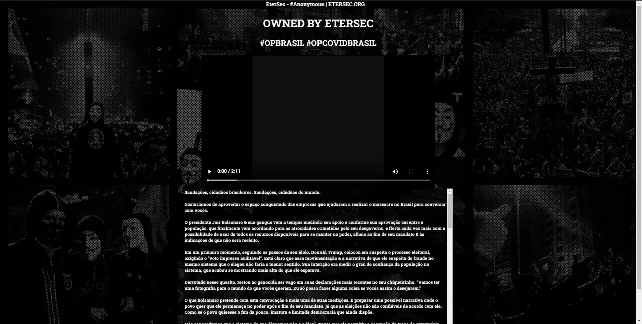 Até a publicação desta matéria, o site do FIB Bank estava fora do ar. Em uma conta do Twitter, batizada de @EterSec_, o grupo também reproduziu o vídeo e acrescentou mensagem contra pautas antidemocráticas.